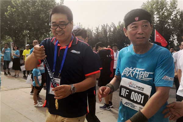 8公里的跑步對魏建軍來說并不輕松,但他堅持跑完并獲得了一塊獎牌  圖/張海天