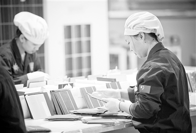 圖①:英利組件車間員工對電池片進行二次分選。