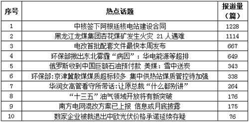 電力方面,南方電網“混改”方案已上報或成為新一輪央企混改的“揭幕戰”引發輿論集中關注。同時,有關具體混改形式、混改主體等內容也將成為輿論關注重點。此外,媒體還關注了電改首批配套文件最快本周發布、環保部揪出東北霧霾“病因”為華電能源等超排、華潤女高管看守所帶話讓原總裁“什么都別講”、中國發布未來5年電力科技重大技術方向等其他話題。