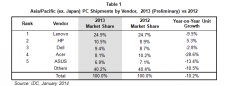 2013年亞太地區個人電腦市場縮減10%