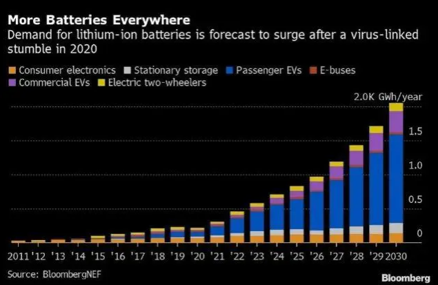 疫情致電動汽車銷量下滑 今年電池需求或首次下跌
