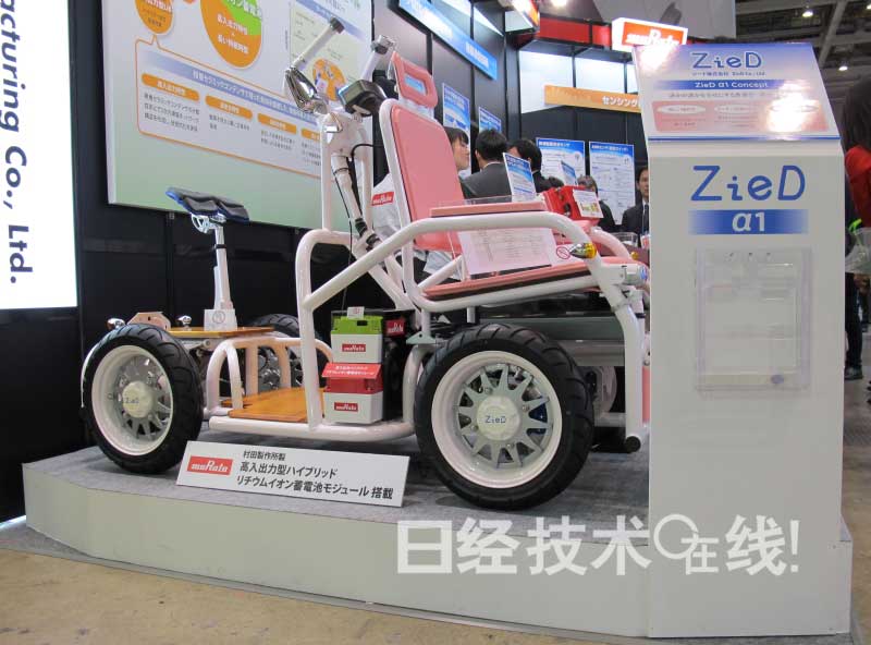村田制作所在“第6屆日本國際汽車電子技術展”(2014年1月15日~17日,東京有明國際會展中心)上,展示了配備該公司正在開發(fā)的高輸出功率鋰離子電池的超小型交通工具。所款電池可實現(xiàn)最大100A的放電,用6分鐘就能充電90%。壽命方面,在常溫下每天充放電一次的話,能使用10年。