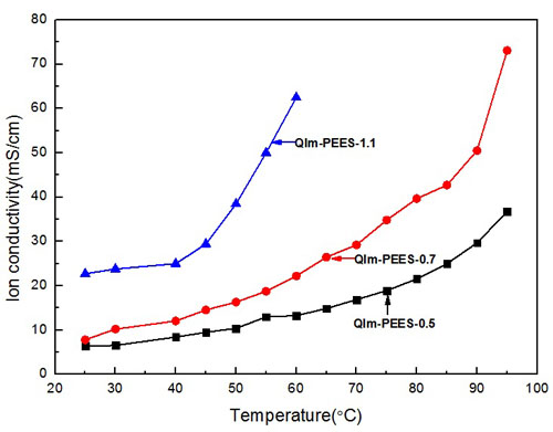 QIm-PEES-AEMs在不同溫度下的離子電導(dǎo)率