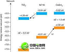 從技術上講,這種新的電池不是真正的格拉茲爾電池,因為用孔導電的材料CsSnI3本身也吸收光。事實上,這種材料可吸收更多的光,吸收更廣泛的可見光譜,勝過格拉茲爾電池使用的典型染料。卡納其迪斯-羅伯特??昌的電池中,CsSnI3也發揮其他作用,使電池運行,這一作用不是液體電解質電偶具有的,這一作用就是吸收光。