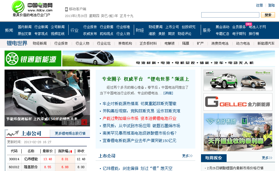 圖為中國電池網(wǎng)“鋰電世界”頻道截屏