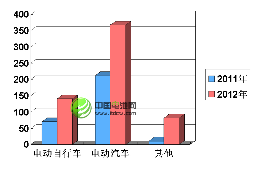 2012年全球動力鋰離子電池市場增長總量527.12萬kWh,雖然與3C小電池還有近100萬kWh的差距,但增長速度(近100%)遠高于小電池(不到30%);交通工具各細分市場呈現全面增長態勢,工業&儲能市場目前還主要依賴電動工具,但智能電網儲能和移動基站電源市場增長很快。