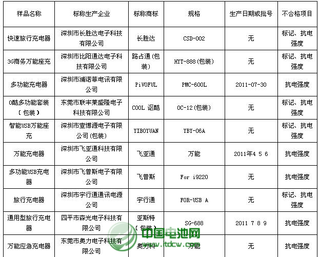 據悉,抗電強度項目是考核充電器在通電工作時,其零部件及材料是否會出現漏電現象。是考核充電器安全性能的重要指標,此項不合格有可能會使人體發生觸電,危及消費者人身安全,應該引起足夠的重視。根據監測結果,長勝達快速旅行充電器、飛普斯多功能USB充電器、宇行通旅行充電器、佰佳通七彩手機電池充電器、鼎通達智能商務快充等標稱品牌商品該項目不合格。