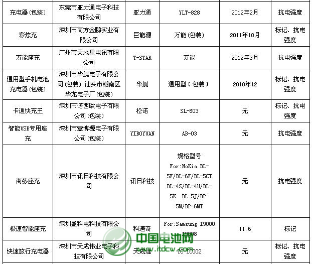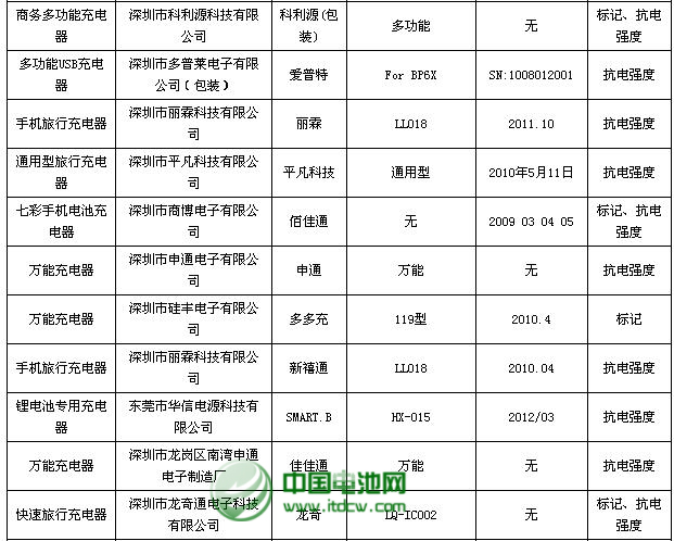 流通領域商品質量監測不合格商品公示名單(充電器)
