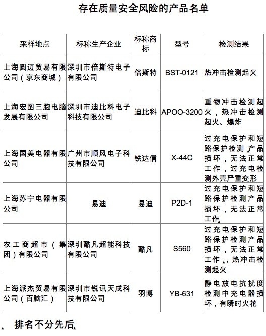 根據(jù)檢驗(yàn)結(jié)果的統(tǒng)計(jì)分析,考慮到風(fēng)險(xiǎn)的嚴(yán)重程度和風(fēng)險(xiǎn)發(fā)生的可能性,經(jīng)專家評(píng)估,移動(dòng)電源產(chǎn)品的質(zhì)量安全風(fēng)險(xiǎn)等級(jí)被評(píng)定為“較嚴(yán)重”,需要引起足夠的關(guān)注。市質(zhì)監(jiān)局表示已建議相關(guān)部門盡快出臺(tái)相關(guān)國(guó)家標(biāo)準(zhǔn),規(guī)范移動(dòng)電源行業(yè)。對(duì)存在質(zhì)量安全風(fēng)險(xiǎn)的產(chǎn)品,市質(zhì)監(jiān)局已督促相關(guān)企業(yè)主動(dòng)下架、收回產(chǎn)品。而記者今天上午在京東商城看到,標(biāo)號(hào)為bst-0121的商品已無(wú)法找到,實(shí)行了下架處理,但是淘寶仍有在售。