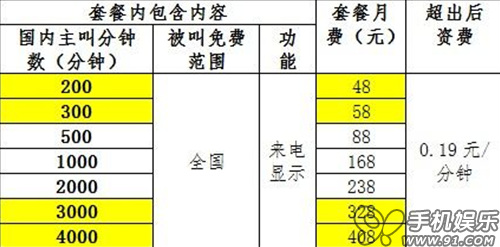 4G語音套餐(注:48元、58元、328元、408元四檔將于2014年2月1日上線)
