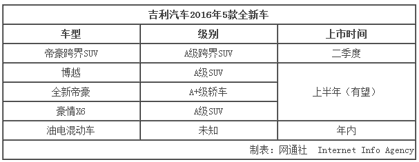 2016年,吉利將深耕SUV領域,SUV產品銷量要占到其總銷量的45%,按既定目標60萬輛計算,SUV車型銷量將達27萬輛。其中吉利博越和帝豪跨界SUV將率先上市。帝豪跨界SUV和博瑞、博越同屬吉利第三代產品,外觀由彼得·霍布里帶領的設計團隊打造,在沿襲了家族化設計的基礎上,更多融入了中國傳統元素和現代化時尚元素。