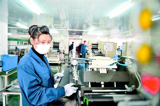 宜昌市夷陵區宇隆新能源公司工人對鋰離子電池產品進行充電激活,公司6條生產線正在加緊生產