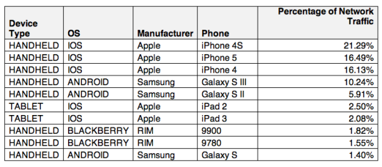 6月12日移動(dòng)流量分析公司Actix公布的最新數(shù)據(jù)顯示,在該公司監(jiān)控的網(wǎng)絡(luò)中,iPhone 4、iPhone 4S和iPhone 5占所有設(shè)備3G流量的近54%。而如果加上iPad的份額,那么這一數(shù)字將上升至近59%。