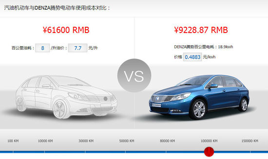 以一臺百公里耗油8L的汽油車為例,目前的平均油價暫定7.7元(93號),那么百公里的使用費用上,汽油車為61.6元,而騰勢則為9.23元,但到了10萬公里的時候,費用差異就非常可觀了,那時汽油車為6.16萬元,而騰勢才為9228.87元。由此能夠看出,購買一臺電動車它能夠獲得多大的后期實惠。