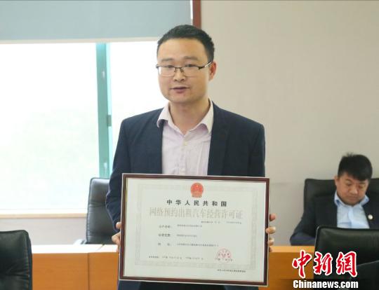 “妙盛出行”工作人員展示獲批的網約車牌照。 李想 攝