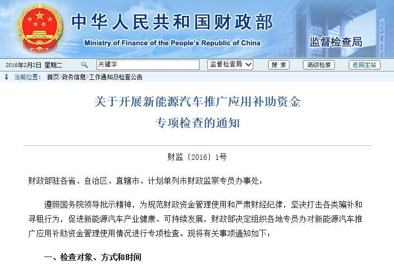 財政部:開展新能源汽車推廣應用補助資金專項檢查
