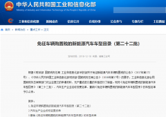 工信部發(fā)布第二十二批《免征車輛購置稅的新能源汽車車型目錄》