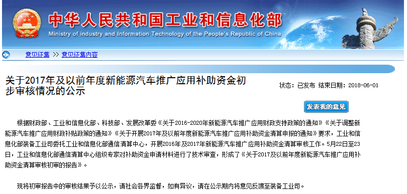5月25日,工信部公示了《關(guān)于2017年及以前年度新能源汽車推廣應(yīng)用補(bǔ)助資金初步審核情況》,公告 ... 查閱全文