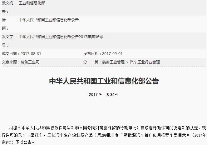 2017年第七批新能源車推薦目錄公布 88家車企282款車型入選