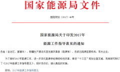 能源局印發2017年能源工作指導意見 推進能源清潔開發利用