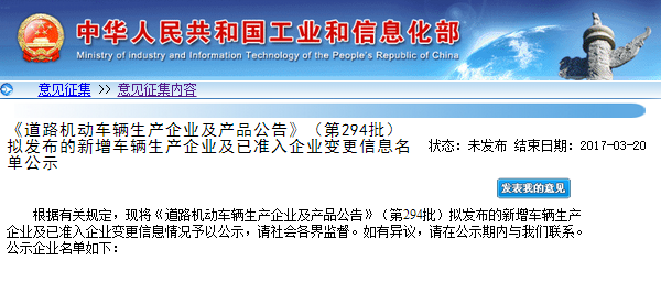 工信部第294批《道路機動車輛生產企業及產品公告》新增及變更企業公示