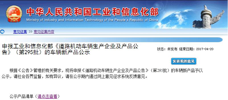 工信部:第294批《道路機動車輛企業及產品公告》申請企業及產品