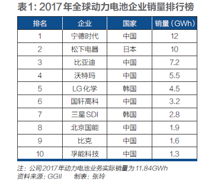 有數據顯示,2017年全球動力電池銷量排名前十中,中國企業占得七席,分別是寧德時代、比亞迪、沃特瑪、國軒高科、北京國能、比克和孚能科技。其中寧德時代新能源科技有限公司(300750.SZ,下稱“寧德時代”)超越了2016年的霸主松下(NYSE:PC),拿下2017年全球動力電池銷量狀元。這家估值上千億元的動力電池也在6月11日成功上市。