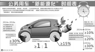 據新華社電國家機關事務管理局、財政部、科技部、工業和信息化部、國家發展改革委昨天聯合公布了《政府機關及公共機構購買新能源汽車實施方案》,明確了政府機關和公共機構公務用車“新能源化”的時間表和路線圖。
