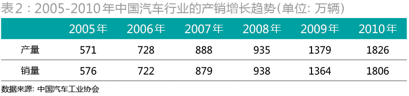回過頭看,比亞迪汽車業(yè)務(wù)2010年之前的迅猛發(fā)展,主要受惠于當(dāng)時(shí)中國(guó)汽車業(yè)的爆發(fā)式增長(zhǎng)及政府的產(chǎn)業(yè)政策刺激。2008年金融危機(jī)之后,中國(guó)政府推出了汽車行業(yè)經(jīng)濟(jì)刺激政策,如購(gòu)置稅優(yōu)惠、以舊換新、汽車下鄉(xiāng)、節(jié)能惠民產(chǎn)品補(bǔ)貼等。2009-2010年,中國(guó)汽車行業(yè)快速增長(zhǎng),汽車市場(chǎng)呈現(xiàn)產(chǎn)銷兩旺的良好態(tài)勢(shì)(表2)。在此背景之下,國(guó)內(nèi)自主品牌汽車企業(yè)2009、2010年的銷量皆獲得長(zhǎng)足發(fā)展,比亞迪更借勢(shì)迅猛“崛起”。