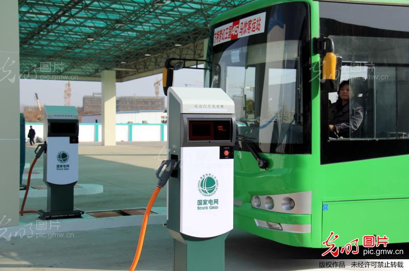 2013年12月28日,在安徽省蕪湖市國家電網飛陽電動汽車充電站內,一輛45路公交車正在這里充電準備上路,這輛公交車成為蕪湖首輛新能源電動公交車。