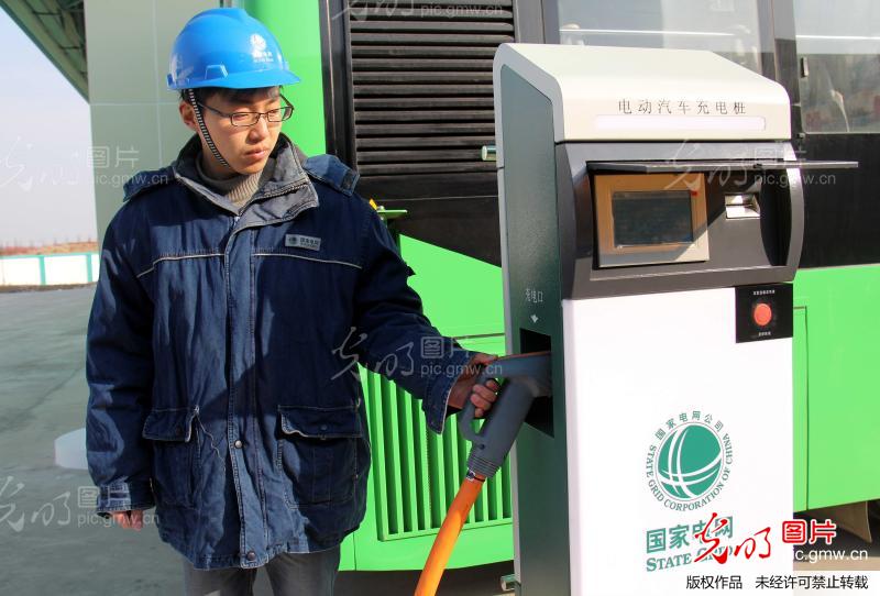 2013年12月28日,在安徽省蕪湖市國家電網飛陽電動汽車充電站內,一輛45路公交車正在這里充電準備上路,這輛公交車成為蕪湖首輛新能源電動公交車。 作為國家今年首批新能源汽車推廣應用城