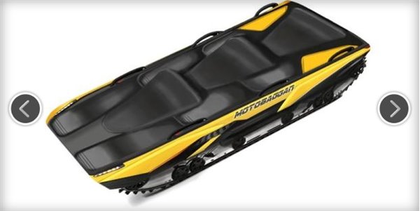 和龐巴迪雪地摩托一樣,Motobaggan也屬于一種摩托化的、自動(dòng)運(yùn)行的雪地車,能夠在用戶乘雪橇下山后將他帶回山上。Motobaggan能夠雙軌運(yùn)行,具有三個(gè)座位,其傳感器能夠跟蹤車主上下山。Motobaggan也配備了一個(gè)鉤子,可以用來拖拉雪橇后上坡。