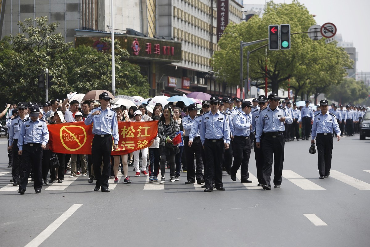 5月11日,上海松江市民再次聚集游行,抗議電池廠項目落戶松江。5月1日,松江市民在松江政府門前抗議,反對國軒新能源汽車動力電池基地落戶松江。