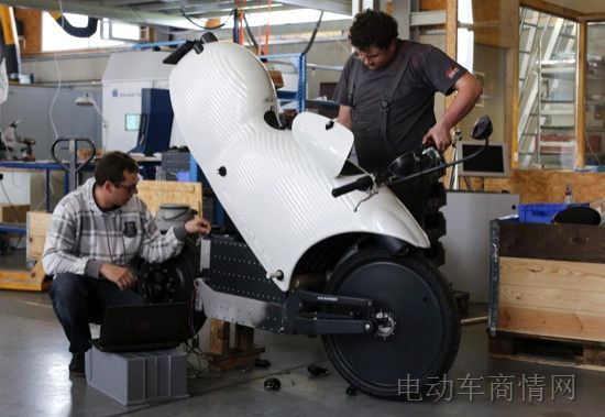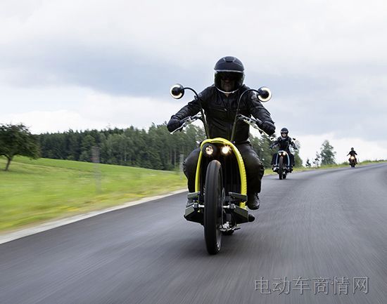 這輛車看起來就像美式機車,他的電控和電傳系統集成到了后輪,這樣就能提供一個低維護成本的騎行體驗。而在核心的部位則是整個車的電池系統。在兩個輪軸之間最短的連接部成一直線,中間的結構是由鋁制成的,這個地方成為了避震器和電池外殼兩面高分辨率的2.4英寸后視鏡為駕駛員提供了關于車輛和行駛的信息。