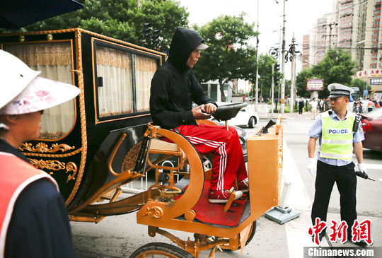 6月9日,一輛裝飾豪華的"四不像"電動車行駛在北京街頭,被執(zhí)勤交警阻攔,隨后被帶走。