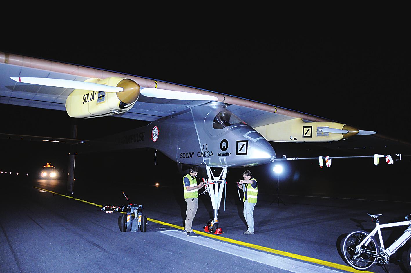 官方介紹稱,“太陽驅(qū)動(dòng)”號(hào)由超輕碳纖維材料制成,翼展63.4米,堪比空客A340型飛機(jī),而重量只有1600公斤,僅相當(dāng)于一輛普通小汽車的重量。該機(jī)是世界上第一架設(shè)計(jì)為可晝夜飛行的太陽能環(huán)保飛機(jī),機(jī)翼上裝有1.2萬對(duì)太陽能電池板,為機(jī)上4臺(tái)電動(dòng)機(jī)供電。飛機(jī)白天飛行時(shí),可將多余的太陽能電力儲(chǔ)備到高性能蓄電池中供夜間飛行,以實(shí)現(xiàn)無燃油晝夜飛行。“太陽驅(qū)動(dòng)”號(hào)2010年4月7日首飛成功,當(dāng)年7月7日實(shí)現(xiàn)晝夜試飛,2011年5月首次完成瑞士至比利時(shí)的跨國飛行。
