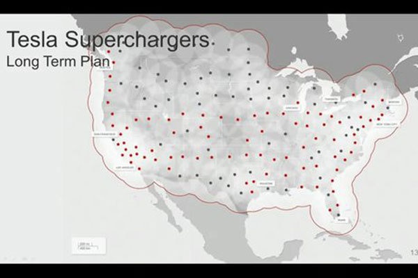 10.按照Tesla的計(jì)劃,在2015年左右Supercharger將覆蓋整個(gè)美國(guó)。一旦建成,這將是一個(gè)龐大的充電站網(wǎng)絡(luò),其所帶來(lái)的附加價(jià)值十分可觀。此外,這個(gè)充電網(wǎng)絡(luò)將是美國(guó)乃至世界上第一個(gè)電動(dòng)汽車能源供給網(wǎng)絡(luò),在今后電動(dòng)汽車普及時(shí),Supercharger將成為充電樁的首選。