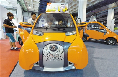 圖為參展商展示的純電動微型城市車。該車具有外觀時尚、續航里程高、輕量化車身和智能操作平臺等特點,吸引了很多參觀者。