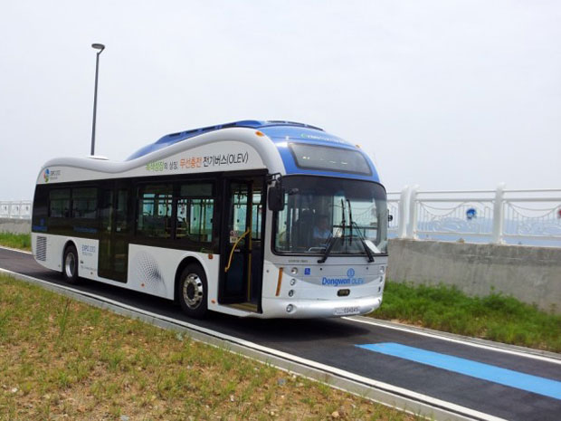 公路全程 24 公里,兩輛 OLEV 電動公交車定期往返運送旅客,該市計劃到 2015 年再添加 10 輛 OLEV 公交車。在行駛中,公交車能以 85% 最大輸電效率無線接收 20 kHz 、100 kW 電力,汽車底盤與路面相距 17 厘米。公交車安裝的是廉價的鋰離子電池,其電力接收裝置和路面下的輸電裝置并不需要時刻連接,事實上埋在路面下的輸電裝置長度通常只需要占整條公路長度5%-15%。