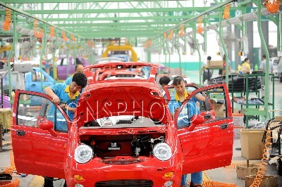 8月14日,山東維動新能源汽車有限公司生產車間,工人正在組裝低速電動車。 圖片/CNSPHOTO 中國新聞圖片網