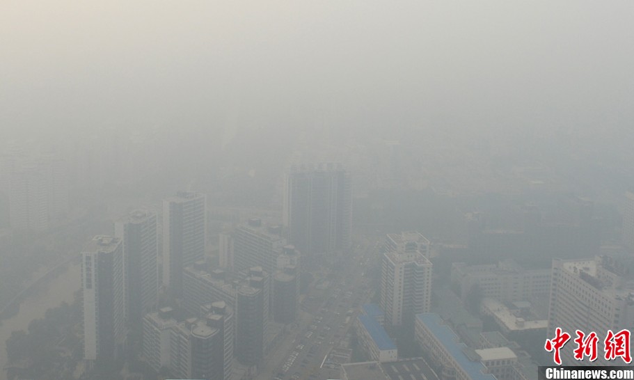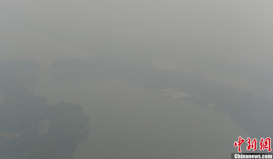 10月5日,從北京中央電視塔238米觀景平臺俯瞰嚴重污染的北京。當日,北京市PM2.5濃度已達重度污染。據中央氣象臺消息,中央氣象臺5日18時發布霾黃色預警,預計今天夜間到明天白天,河北大部、京津地區、山西東部和南部、河南北部等地有中度霾,局部地區有重度霾。廖攀/攝