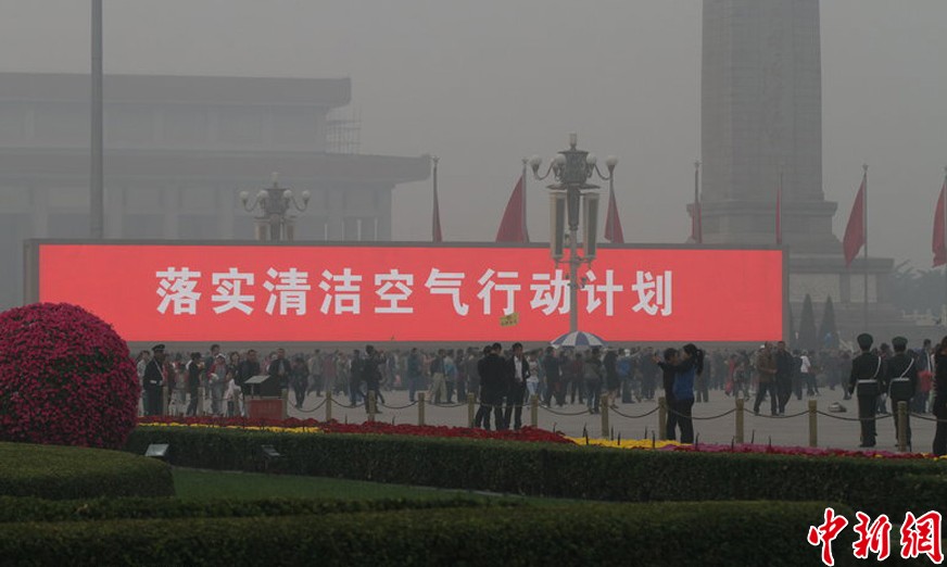 10月5日,從北京中央電視塔238米觀景平臺俯瞰嚴重污染的北京。當日,北京市PM2.5濃度已達重度污染。據中央氣象臺消息,中央氣象臺5日18時發布霾黃色預警,預計今天夜間到明天白天,河北大