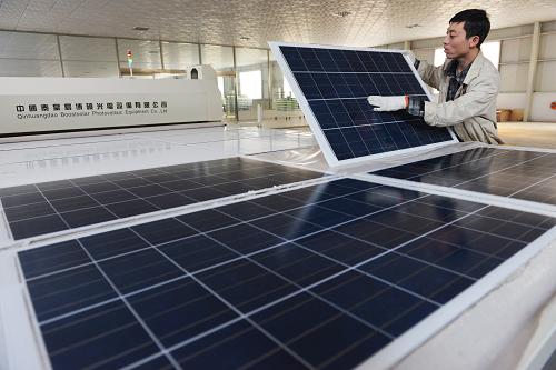 2013年10月22日,位于山東省鄒平縣黛西街道的希萊特光電科技有限公司工人在檢查壓制的太陽能電池板。該公司成立三年來,自主研發太陽能電池組件以及太陽能電站系統等產品,年產能達100兆瓦。新華社發(董乃德 攝)