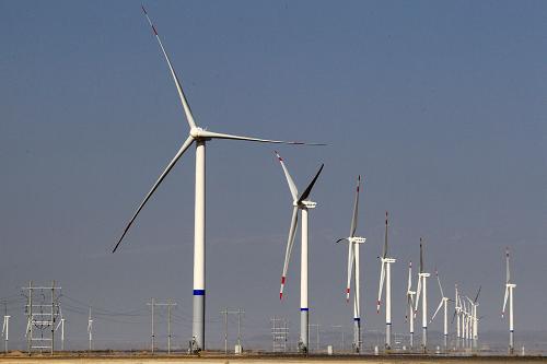 這是2013年10月25日拍攝的即將投運的中電投新疆哈密煙墩西20萬千瓦風力發電場。新疆哈密風電、光電資源豐富,截至目前,新疆哈密獲得核準風電項目55個,總規模426.9萬千瓦,現已有22個風電項目并網發電,容量達126.9萬千瓦;獲得核準光伏項目31個,總規模66萬千瓦,現已有11個光伏發電站并網發電,容量達21.5萬千瓦。新華社發(蔡增樂 攝)