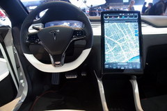 MODEL X內飾最為搶眼便是中控那塊17英寸的觸控液晶顯示屏了,車輛的一切行車信息、娛樂、導航、監(jiān)控影像等等均通過它向駕乘人員傳達。