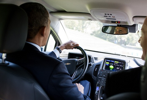通用Chevrolet Volt電力車,這只是奧巴馬在2012年10月順手開一開新聞秘書的私人車子啦。