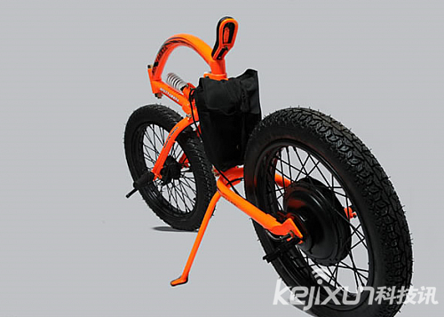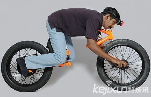 這輛自行車名為“Nisttarkya”其實是一輛概念電動自行車,看這輪胎也能知其一二,相當的寬大,加上電池整車重量80斤,很有分量。這輛電動自行車把手在前輪胎中軸,就是與中軸完全一體,包括剎車。另外其還有一個前大燈,但沒有安裝在車身前面,而是另外作為一個配件,使用時,需戴在頭上。
