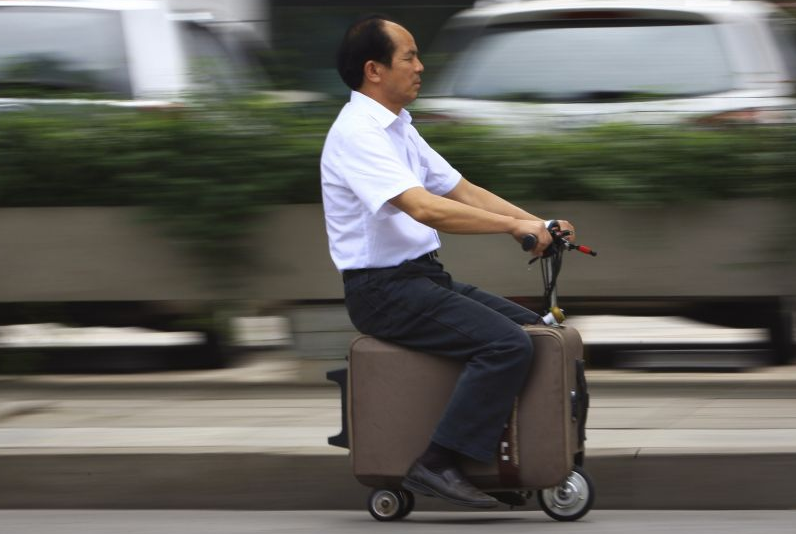 長沙農民賀亮才鼓搗10余年發(fā)明載人電動行李箱