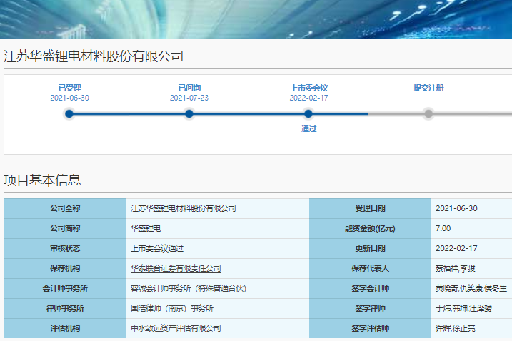 華盛鋰電科創(chuàng)板IPO過會 CATL/BYD/天賜已提前下單電解液添加劑