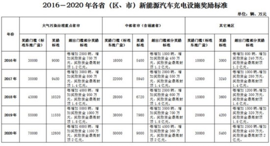 (二)獎勵標準。獎勵標準主要根據各省(區、市)新能源汽車推廣數量確定,推廣量越大,獎勵資金獲得的越多。